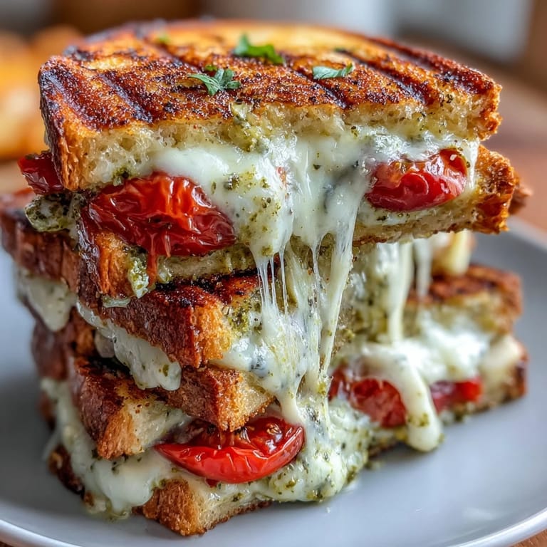 Pin to Board Experience a vibrant twist on the classic grilled cheese with this Caprese Pesto Grilled Cheese. This recipe brings together the fresh flavors of an Italian summer—creamy mozzarella, juicy tomatoes, and aromatic basil pesto—all melted to perfection between golden, crispy slices of rustic bread. It is an easy yet gourmet way to elevate your lunch in just 20 minutes.