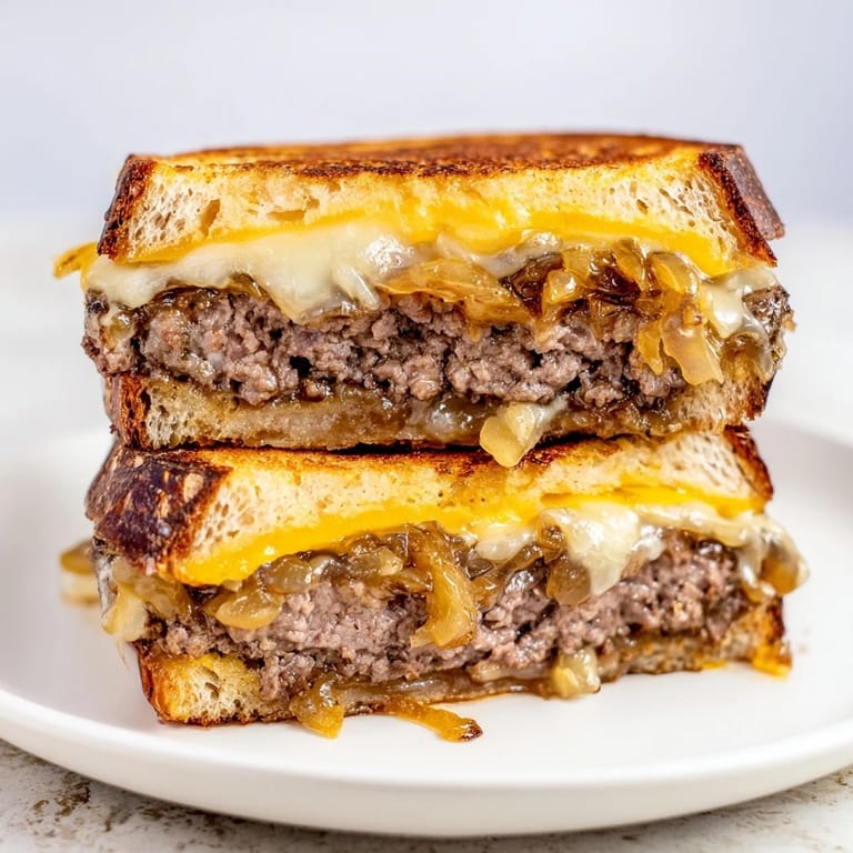 Pin to Board Experience the ultimate comfort food with this classic American diner-style Patty Melt. Featuring a juicy beef patty, sweet caramelized onions, and melted cheese, all grilled between buttery slices of bread, this sandwich is a savory masterpiece that brings the diner experience right to your kitchen.