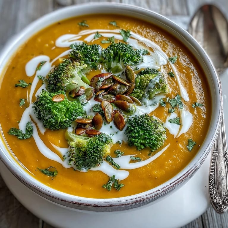 Pin to Board There's something magical about the moment when roasted vegetables transform into something silky and warm. I was experimenting with my oven one autumn afternoon, tossing squash and broccoli with olive oil more out of curiosity than anything else, and the caramelization that happened was a complete revelation. That first spoonful of the finished soup, with its natural sweetness and gentle earthiness, made me realize I'd stumbled onto something worth making again and again.
