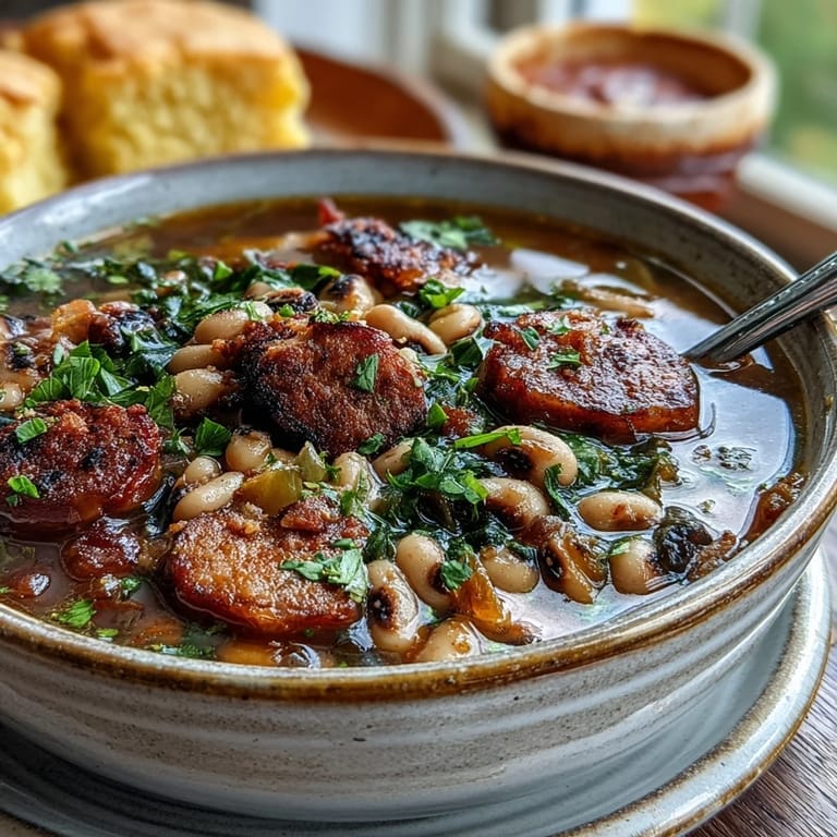 Pin to Board My grandmother used to say that black-eyed peas on New Year's Day weren't just tradition—they were insurance against a year of bad luck. I didn't believe her until I tasted them simmering on her stove, the kitchen filling with smoke from the sausage and the earthy warmth of spices I couldn't name. Years later, I found myself recreating that exact moment, my own pot bubbling away while the smell transported me straight back to her kitchen. There's something about these humble legumes that feels less like cooking and more like keeping a promise to the past.